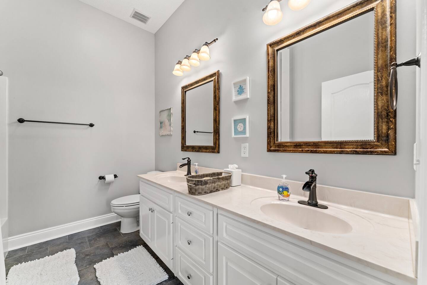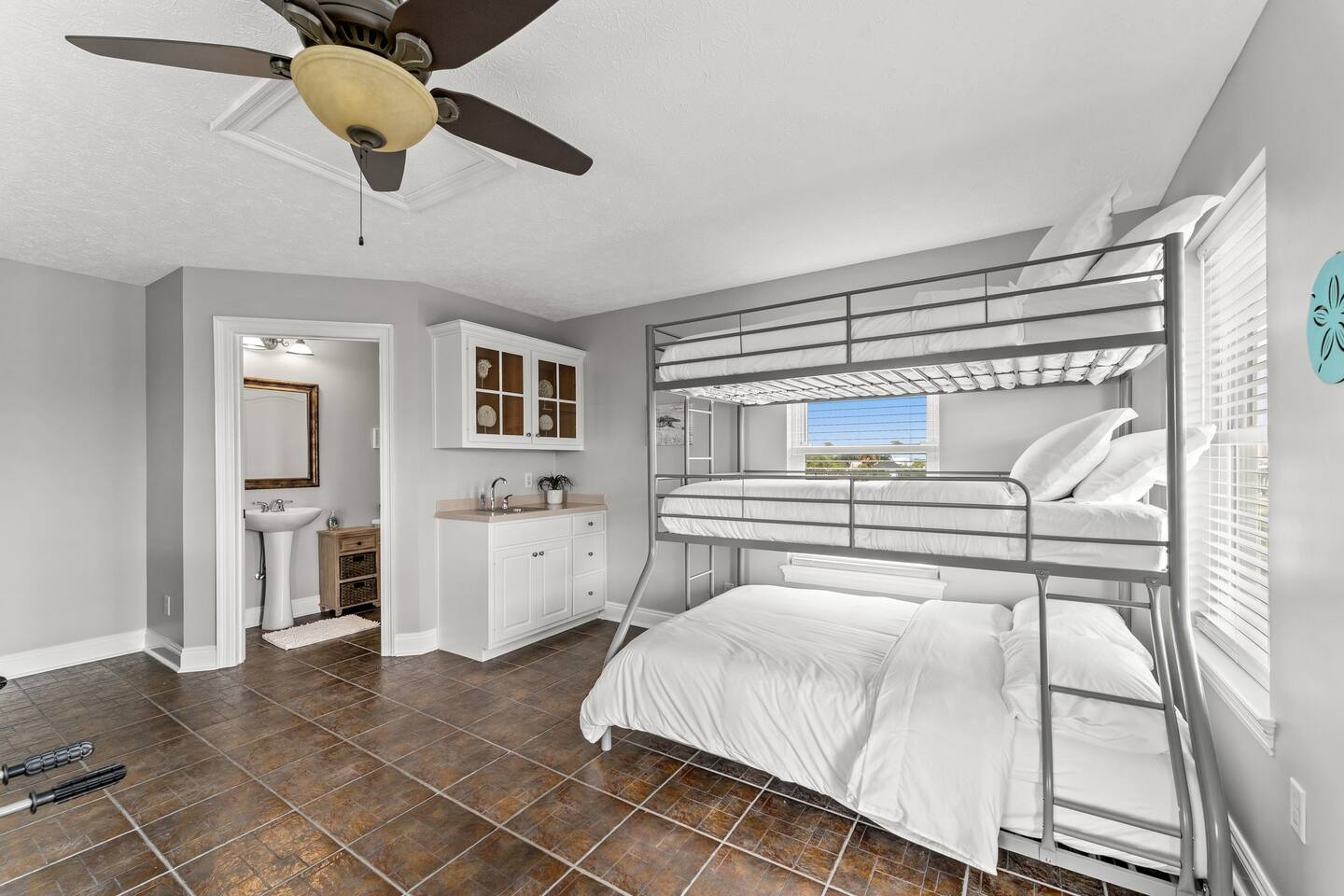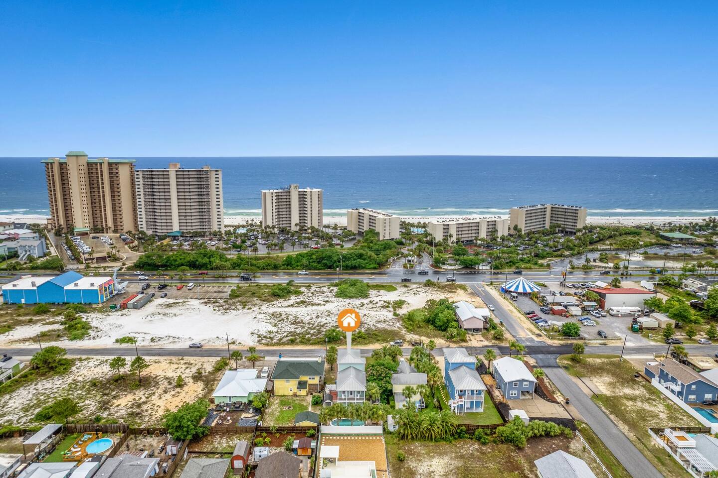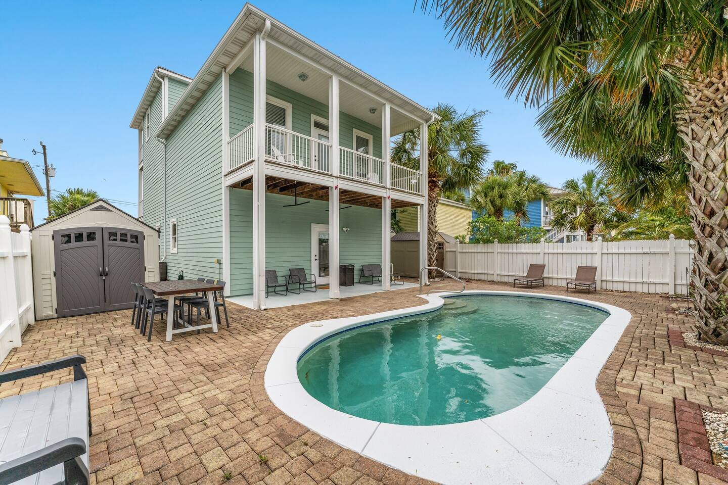 Only steps from the white sands & beautiful emerald waters of the Gulf of Mexico! Spacious decks from all bedrooms and on 2nd & 3rd floors, great for relaxing or watching the sunset! 3rd floor game-room with patio & gulf view. Very spacious bedrooms, with 3 of the bedrooms having their own en-suite dual sink spacious bathrooms. Each of these 3 bedrooms have a smart tv and a queen bed and the largest bedroom on 2nd floor also has a twin over twin bunk bed. The 3rd floor has a triple bunk bed (1 full & 2 twins), half bath, & board games/foosball table/etc. and has a beautiful view of the gulf. Watch the fireworks, sunset or sunrise from the balconies over the most beautiful beaches in the world! Leave your beach toys at home as we have plenty of extra beach chairs, umbrellas, sand toys, wagon to haul items to the beach, pool rafts/tubes, volleyball net, a pool/beach cooler, games, etc. in our guest accessible storage sheds. We provide a starter pack of basic supplies & consumables (toilet paper, paper towels, trash bags, dishwasher detergent, dish soap, shampoo, conditioner, soap, etc.) so you may need to bring or purchase additional supplies, based on the length of your stay. The Blue Crab is a 4 minute walk to the nearest public beach access point, Rick Seltzer Park, which has public restrooms & outdoor showers.
